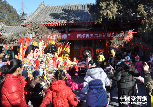 春節來臨之際,西城區臺辦、區少年宮、區臺胞服務中心、國際兒童教育聯合會攜手,在西城少年宮這座傳統四合院里舉辦了“‘過年了’——兩岸青少年迎新春文化廟會”,邀請留京過年的臺灣小朋友和北京小朋友一起過年。