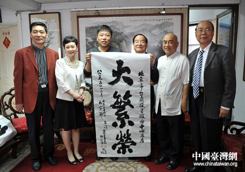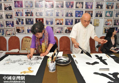 中國臺灣網2月26日高雄消息 日前,應中華海峽兩岸企業交流協會的邀請,由北京市臺辦公室副巡視員杜德平率領的“北京特色周”參展團,在高雄舉辦了“京臺兩岸書畫家交流筆會”。程茂全、譚軍立、王靜和康景文、蕭季慧、楊濤、洪塔美等京臺書畫名家參加了交流筆會。