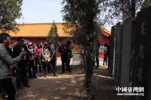 兩岸記者來到平頂山劉累陵園采訪。(圖片來源:河南省臺辦)