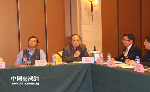 臺商嘉興金龍門生態農業有限公司董事長林村勇發言。(貴州省黔南臺辦羅甸縣、王斌 攝)
