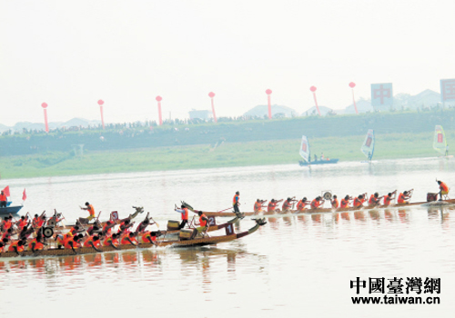 中國臺(tái)灣網(wǎng)6月13日岳陽消息 “節(jié)分端午自誰言,萬古傳聞為屈原”。6月10日至13日,以“中華端午情,天涯共此時(shí)”為主題的第九屆中國汨羅江國際龍舟節(jié)暨海峽兩岸中華龍舟邀請(qǐng)賽在湖南岳陽汨羅江隆重舉行。來自海峽兩岸的12支龍舟隊(duì)同江競(jìng)技,紀(jì)念先賢屈原,歡度端午佳節(jié)。