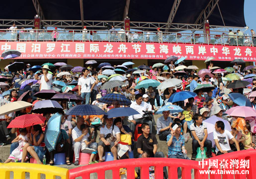本屆活動(dòng)是自2005年舉辦龍舟賽事以來,首次邀請(qǐng)臺(tái)灣同胞參賽。來自寶島臺(tái)灣參賽的4支龍舟隊(duì)共124名隊(duì)員,分別是:臺(tái)灣湖南商會(huì)龍舟隊(duì)、臺(tái)灣新北龍舟隊(duì)、臺(tái)灣臺(tái)南太子宮龍舟隊(duì)、臺(tái)灣臺(tái)南體育志工龍舟隊(duì)。他們?cè)啻握鲬?zhàn)各大龍舟賽事,其中臺(tái)灣湖南商會(huì)龍舟隊(duì)成員都是在臺(tái)灣的湖南籍老鄉(xiāng)。龍舟隊(duì)從臺(tái)灣啟程前,臺(tái)灣海基會(huì)董事長(zhǎng)林中森為其授旗,并向第九屆中國汨羅江國際龍舟節(jié)暨海峽兩岸中華龍舟邀請(qǐng)賽組委會(huì)發(fā)來賀電。