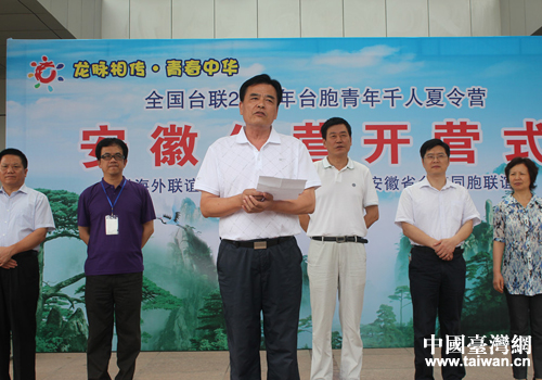 中國臺灣網(wǎng)7月8日合肥消息 7月6日,全國臺聯(lián)2013年臺胞青年千人夏令營安徽分營在合肥開營。安徽省海聯(lián)會副會長周慶出席開營儀式并頒授夏令營營旗。安徽省臺聯(lián)會長陳清海致歡迎辭。省臺辦副主任汪泗淇,省中華文化學(xué)院副院長李霞,省臺聯(lián)副會長仲宏斌、秘書長朱祖春等領(lǐng)導(dǎo)出席了開營儀式。
