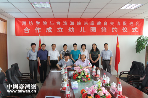 中國臺灣網8月27日濰坊消息 8月27日,濰坊學院與臺灣海峽兩岸教育交流促進會就合作成立幼兒園正式簽約。臺灣海峽兩岸教育交流促進會將在濰坊學院濰坊幼教特教師范學校校區投資建設幼兒園項目,該幼兒園將采用美國“芝麻街”教育模式和臺灣先進的教育理念,配套以符合幼兒智商、情商、品德、體能、藝術素養全面發展的高端設施。(中國臺灣網、濰坊市臺辦聯合報道)