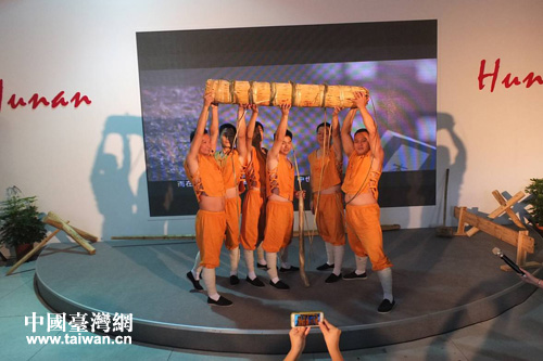 湖南益陽安化制茶漢子臺(tái)北現(xiàn)場獻(xiàn)藝。(湖南省臺(tái)辦 康衡 攝)