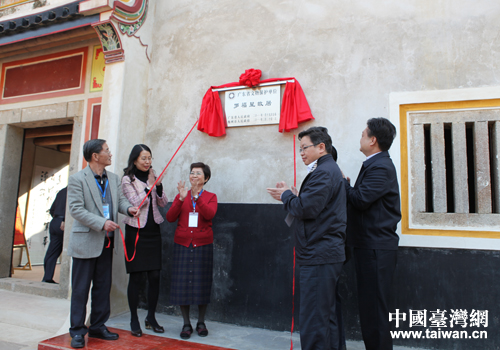 全國臺聯、廣東省臺聯、蕉嶺縣政府有關領導及臺灣抗日志士親屬協進會成員為羅福星故居被評為“廣東省文物保護單位”舉行掛牌儀式。(圖片來源:梅州市臺辦)