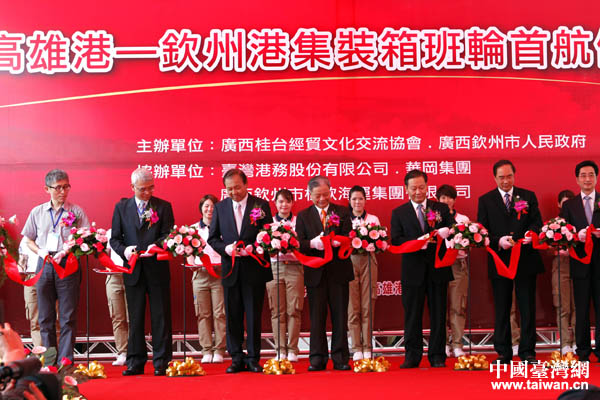 2013年4月25日,高雄港-欽州港集裝箱班輪首航儀式在高雄港香蕉碼頭舉行。(圖片來源:廣西臺辦)