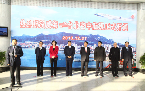 曹曉武副主任代表山東省政府臺辦對威海-臺北航線開通表示祝賀,并指出威海是山東省繼青島、濟(jì)南、煙臺之后第四個開通空中直航臺灣的城市,威海—臺北空中航線的開通必將為兩地的交流與合作注入新的動力和活力,也將促進(jìn)魯臺兩地人員往來與交流合作。