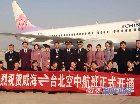 臺北—威海—臺北航班由臺灣最大的航空公司—中華航空公司執(zhí)飛。威海—臺北直航航線第二個航班定于2014年1月17日,之后按照每周一班飛行。今年下半年,該航線計劃增至每周三班。(中國臺灣網(wǎng)、威海市臺辦聯(lián)合報道)