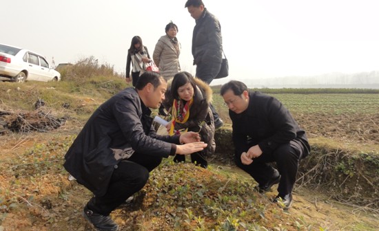 湖南省臺辦主任劉珍瑜(右一)、邵陽市臺辦主任段雪梅(右二)在秀琴農林產品公司調研
