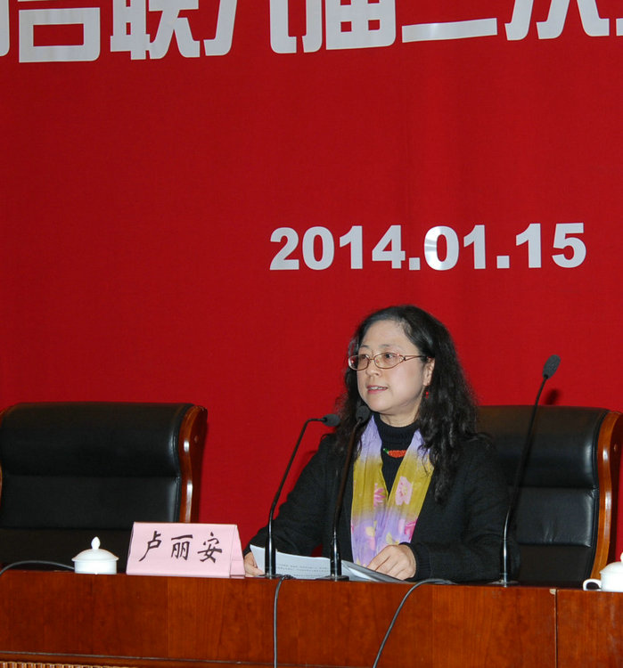 上海市臺聯會長盧麗安作工作報告(上海臺聯 王茜 攝)