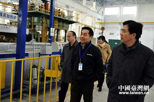 1月14日,青島市委副秘書長、市臺(tái)辦主任田云南在膠州富士康科技集團(tuán)青島海源合金新材料有限公司走訪。(圖片來源:山東省臺(tái)辦)