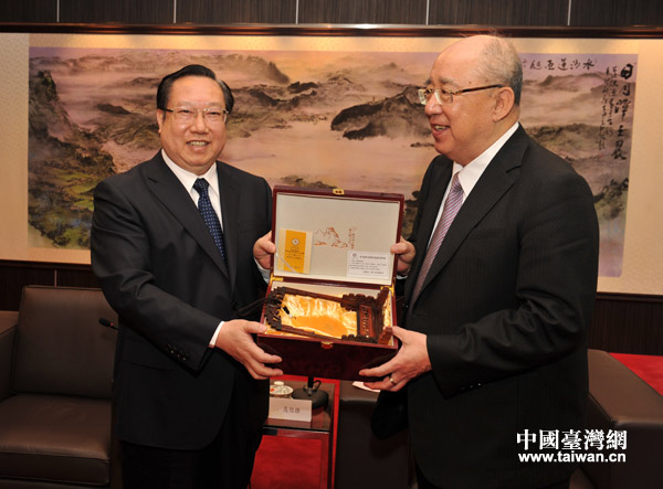 湖北省委常委、常務副省長王曉東會見國民黨榮譽主席吳伯雄。(圖片來源:湖北省臺辦)