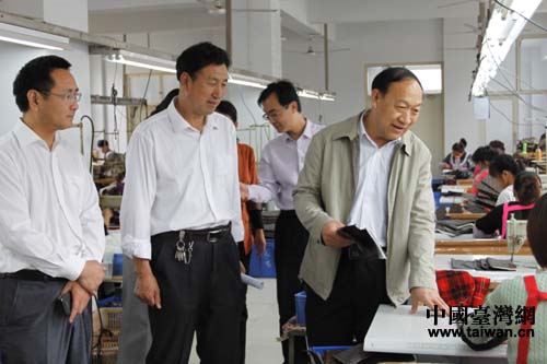 中國臺灣網5月15日安陽消息 5月13日,河南安陽市人大副主任史東林、市臺辦主任李春喜、市人大民僑外工委主任馬寶紅一行到湯陰縣金鐘皮具廠、內黃縣櫻花主題園等臺資企業調研。