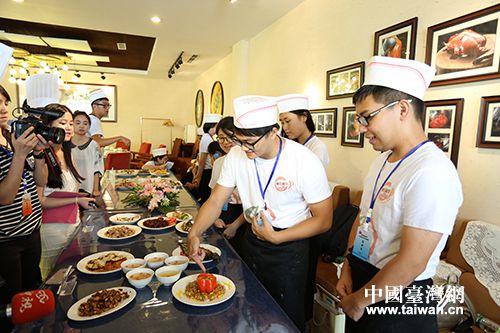 中國臺灣網7月27日成都訊 7月23日,“尋麻問辣品四川”川臺學生川菜文化體驗營在四川旅游學院舉行了一場妙趣橫生的廚藝比賽。20名來自臺灣與四川11所高校的大學生以4人一組為單位,精心制作出各式美味佳肴,為爭奪第一名各出奇招。