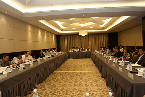 四川省委常委、省委農工委主任李昌平(左三)等領導出席座談會與臺商交流。