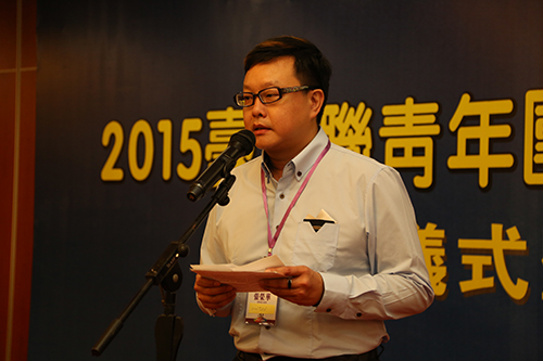 成都臺商協會青委會主委張榮華在2015全國臺企聯青年團四川研習營開營儀式上發言。(圖片來源:四川省臺辦)