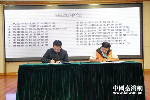 會(huì)上高雄市社區(qū)聯(lián)合發(fā)展協(xié)會(huì)劉高鈿理事長(zhǎng)、臺(tái)灣社區(qū)產(chǎn)業(yè)發(fā)展協(xié)會(huì)席震國(guó)理事長(zhǎng)、豐臺(tái)區(qū)瑞豐社會(huì)服務(wù)中心鄭梓庚總干事、西羅園街道角門東里第二社區(qū)高淑芹主任介紹了社區(qū)的總體營(yíng)造,分享了社區(qū)建設(shè)的經(jīng)驗(yàn)。高雄、豐臺(tái)兩地7對(duì)社區(qū)與里和2對(duì)社會(huì)服務(wù)機(jī)構(gòu)舉行了簽約儀式。