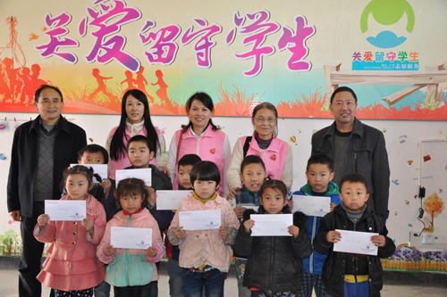 婦聯(lián)會一行與昭化區(qū)梅樹小學資助學生合影。