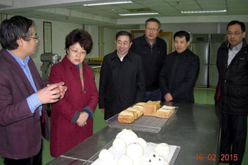 圖:煙臺市委副書記張永霞(左二)在臺資企業產品展示中心考察
