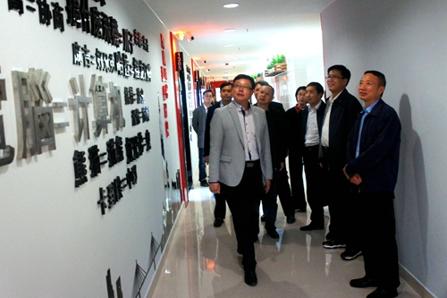 四川省臺辦主任周敏謙(右一)在青年創(chuàng)業(yè)園調(diào)研。
