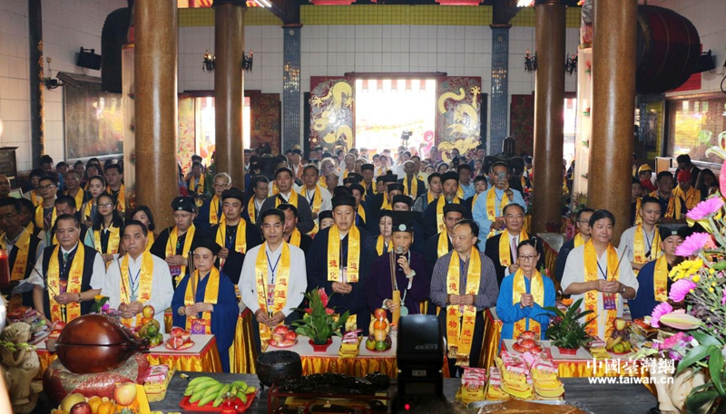 中國臺灣網11月22日高雄訊 11月21日上午8時40分,高雄市金獅湖畔張燈結彩,鑼鼓齊鳴,“道行天下——青城山祖天師巡臺祈福文化慶典”在這里舉行。來自四川和臺灣等地,以及新加坡、馬來西亞、泰國等國的道教界人士齊聚高雄道德院,為民眾祈安祈富祈福。