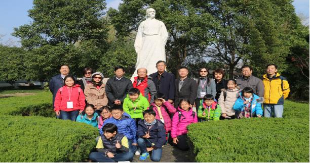 江尾海頭,金橋飛架,參訪首站是位于長江之濱的江陰鵝鼻嘴公園。新北大豐小學的師生及家長代表們飛躍海峽,結緣揚子江畔。