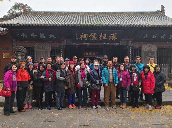臺灣高雄市小港區基層代表團在張飛廟前合影。(圖片來源:南充市臺辦)