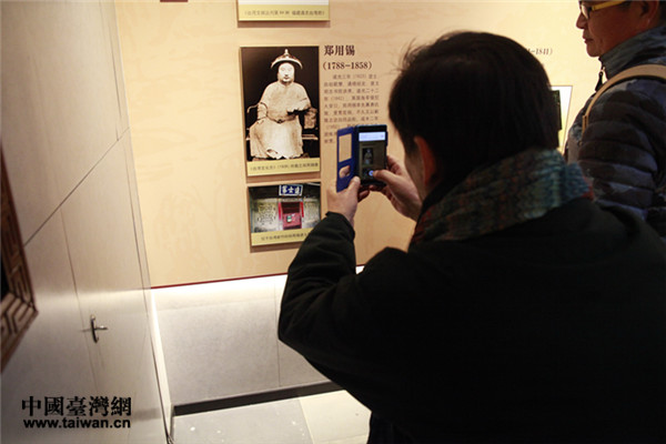 《臺灣導報》副社長吳惠民在會館拍攝鄭用錫位于臺灣新竹進士第的照片。他表示回去將去新竹去看看。(中國臺灣網(wǎng) 郜利敏 攝)