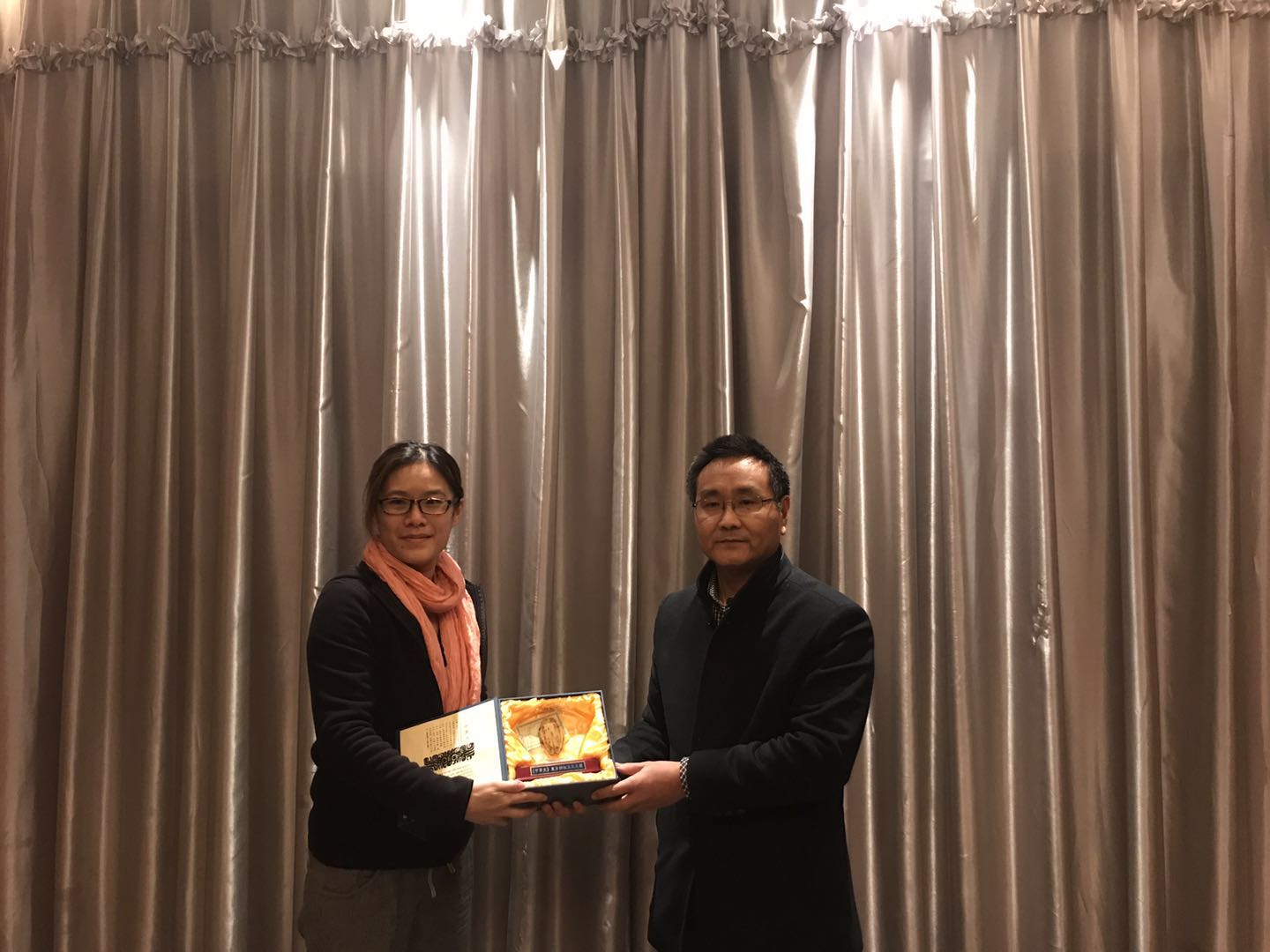 李春喜向臺(tái)灣義守大學(xué)教師簡(jiǎn)意宜贈(zèng)送甲骨片紀(jì)念品