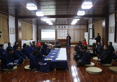 中國臺灣網(wǎng)12月28日大連訊 12月22日—23日,臺灣青年研修營一行15人赴大連研讀中華經(jīng)典。來自大連的知名書畫家、詩人、學(xué)者和琴師等20余人與臺灣青年一起聽琴、聞香、品茗、揮毫、吟詩、賞花。席間,臺灣青年還吟唱了他們剛學(xué)會的《詩經(jīng)·小雅·鹿鳴》。