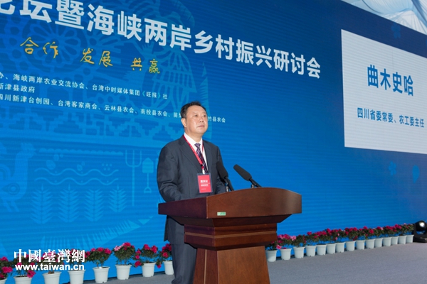 中共四川省委常委、省委農(nóng)工委主任曲木史哈在論壇上致辭。(圖片來源:四川省臺辦)