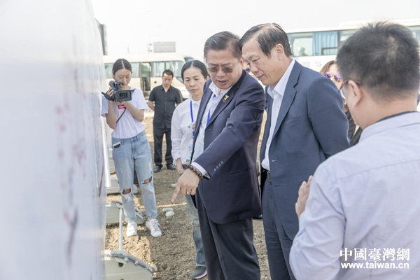 賴正鎰(右二)一行考察德陽高新區(qū)科技企業(yè)孵化器。(圖片來源:德陽市臺辦)