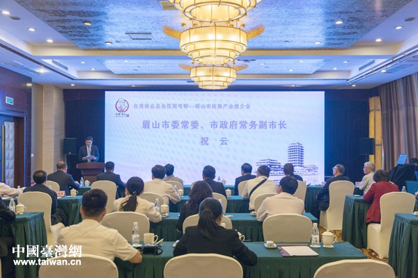 眉山市優(yōu)勢產(chǎn)業(yè)推介會現(xiàn)場。(圖片來源:眉山市臺辦)