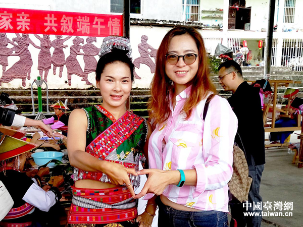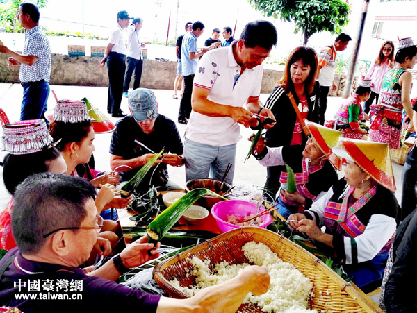 中國臺灣網(wǎng)6月20日玉溪訊 6月16日上午,正值端午佳節(jié)到來之際,參加第七屆云臺會的臺灣澎湖縣嘉賓一行14人來到云南省玉溪市新平縣戛灑鎮(zhèn)平寨村,與當(dāng)?shù)卮迕窆捕榷宋绻?jié),一起包粽子,吃傣族農(nóng)家飯,濃濃的血脈親情在兩岸民眾共同的節(jié)日習(xí)俗中傳遞。(中國臺灣網(wǎng)、玉溪市臺辦、新平縣臺辦聯(lián)合報道)