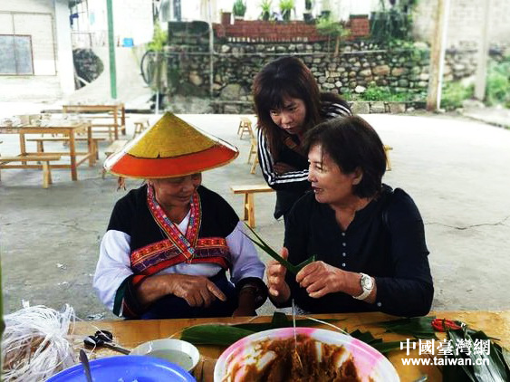 邊包粽子,邊拉家常。(圖片來源:玉溪市臺辦、新平縣臺辦)