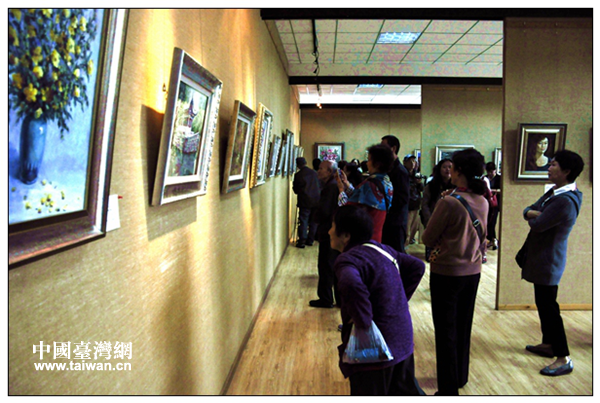 開展儀式后,臺胞臺屬和市民走進畫展,欣賞楊紹玉用丙烯、水彩、油畫等不同風格創作的畫作。其中,《山花》《海埂小路》《風》《母親節的記憶》《舞動》《逆光》等作品色彩豐富、層次分明,用飽滿的張力,吸引人們駐足欣賞,感悟畫作背后作者傳遞的情感故事。
