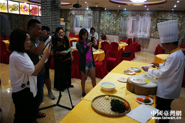 攝制組拍攝橫縣魚生制作過程。(圖片來源:南寧市臺辦)