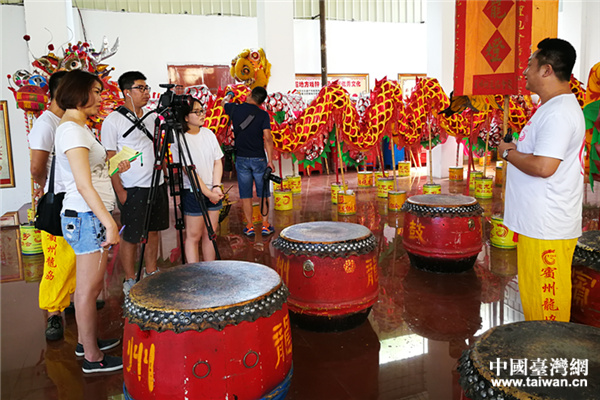 制組采訪賓陽賓州炮龍協會常務副會長、龍隊隊長莫鐘。(圖片來源:南寧市臺辦)