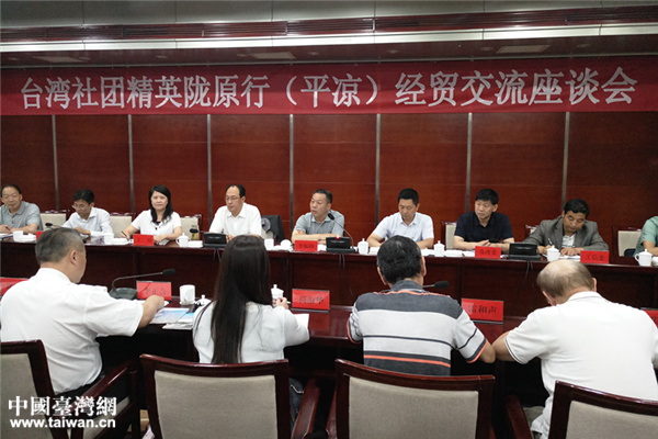 臺灣社團(tuán)精英隴原行平?jīng)鼋?jīng)貿(mào)交流座談會現(xiàn)場。(圖片來源:甘肅省臺辦)