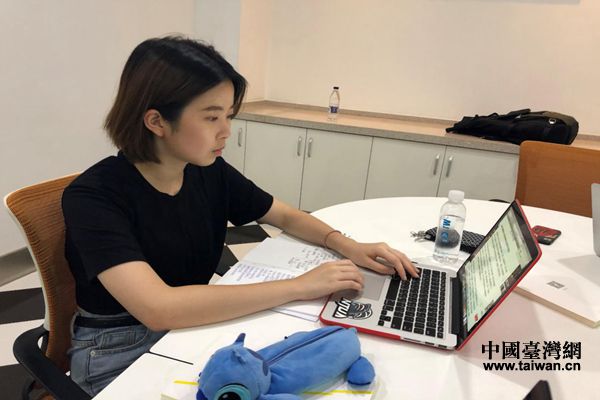 來自臺灣藝術大學的王心怡在構思寫稿。(圖片來源:湖南省臺辦)