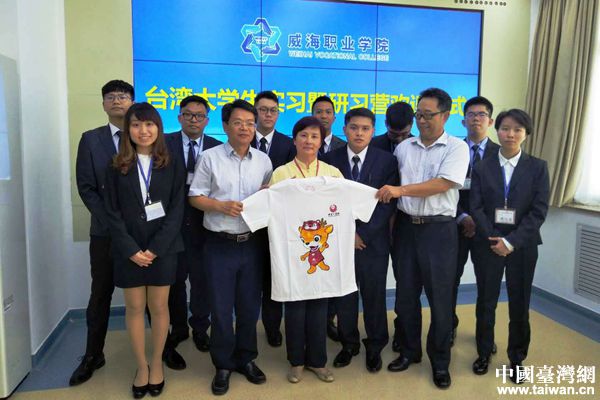 中國過臺灣網7月9日威海訊 7月3日下午,第一屆威海市臺灣青年實習暨研習營在威海職業學院正式開營。市臺辦主任李英春出席開營儀式并致辭,職業學院黨委委員董先致歡迎詞,臺灣實習研習營團長周芷講話,提供給臺灣青年實習崗位的迪尚、新北洋、家家悅集團負責人、臺灣實習學生代表、威海實習學生代表分別做了發言。開營儀式由職業學院國際學院院長柳文杰主持。