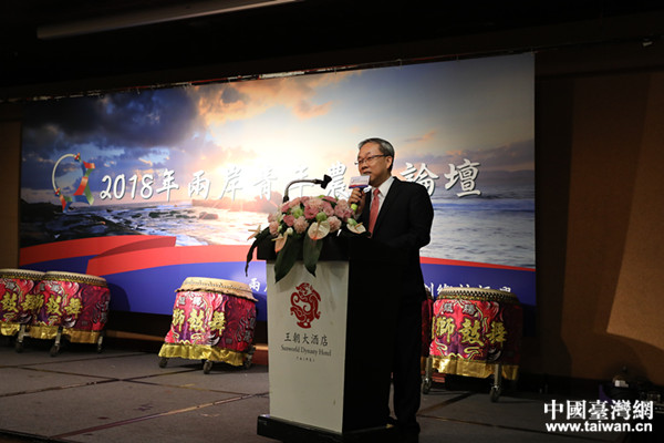 兩岸青年交流總會理事長張茂林在開幕式上致辭。(圖片來源:廣西臺辦)