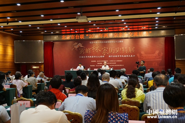 中國臺灣網(wǎng)8月14日北京訊 8月13日,北京市臺聯(lián)組織的“2018年兩岸宗親會交流活動”在京開啟。以臺灣抗日志士親屬協(xié)進(jìn)會理事長林銘鐔為團(tuán)長的臺灣霧峰林家參訪團(tuán)一行14人等應(yīng)邀參加活動。活動期間,將舉辦專題報告會和“霧峰林家”歷史特展、拜會全國臺聯(lián)、參觀中國人民抗日戰(zhàn)爭紀(jì)念館和山西平型關(guān)戰(zhàn)役遺址。