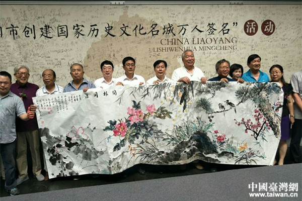 兩地藝術(shù)家共同創(chuàng)作書畫作品——同根同源。(圖片來源:遼寧省臺(tái)辦)