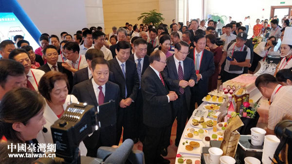 開幕式后,兩岸領(lǐng)導(dǎo)嘉賓參觀江西臺(tái)資企業(yè)產(chǎn)品展覽。(中國臺(tái)灣網(wǎng) 陳文韜 攝)