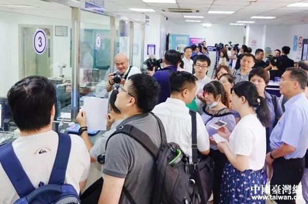 9月1日是申領(lǐng)辦證的第一天,上海市各受理點(diǎn)迎來了不少港澳臺居民。(圖片來源:上海市臺辦)