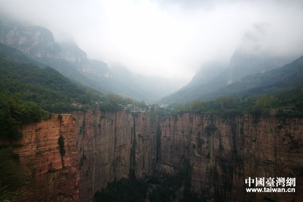 郭亮村歷經(jīng)五年零兩個月鑿出了“絕壁長廊”。(中國臺灣網(wǎng) 王莉婷 攝)