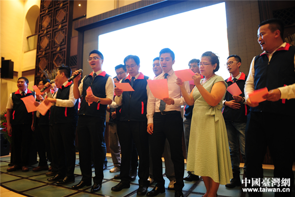 南寧市臺協干部引吭高歌《你是我的兄弟》。(圖片來源:廣西南寧市臺辦)