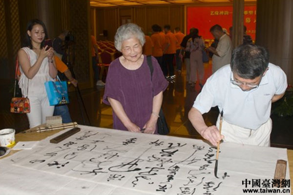 書法創(chuàng)作。(圖片來源:上海市臺辦)
